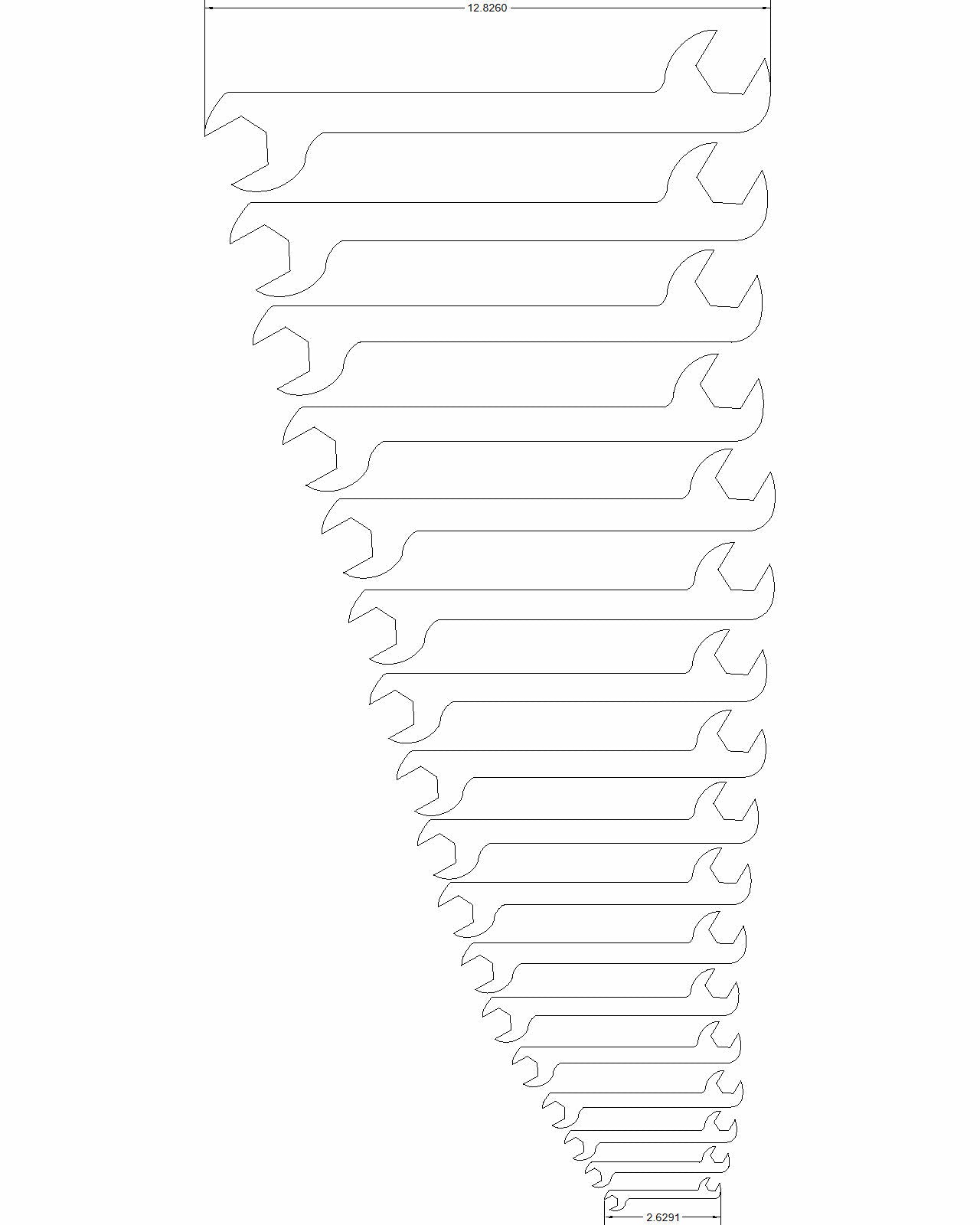 Sizes; 1/4-inch thru 1-1/4-inch in 1/16-inch increments