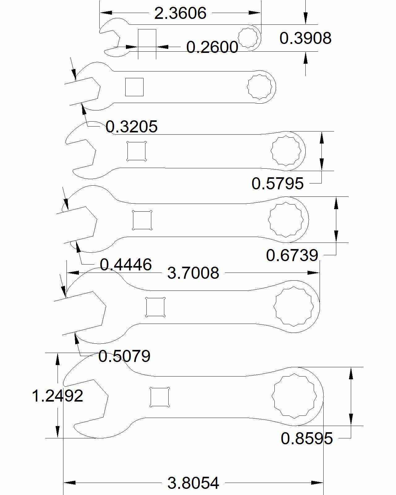 Dimension Thickness: 1-4-inch to 9-/16-inch Double Open End are .1875 thick