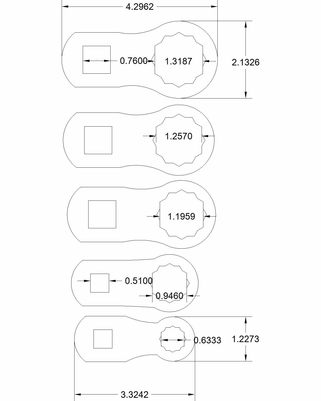 1 3/16, 1 1/14, 1/5/16 with a 3/4 drive