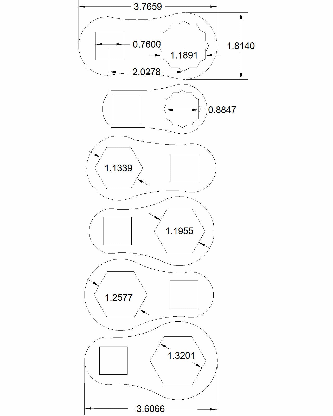 Bulletproof dog bone 6pc/ 12pt/ set "Threlkeld" model